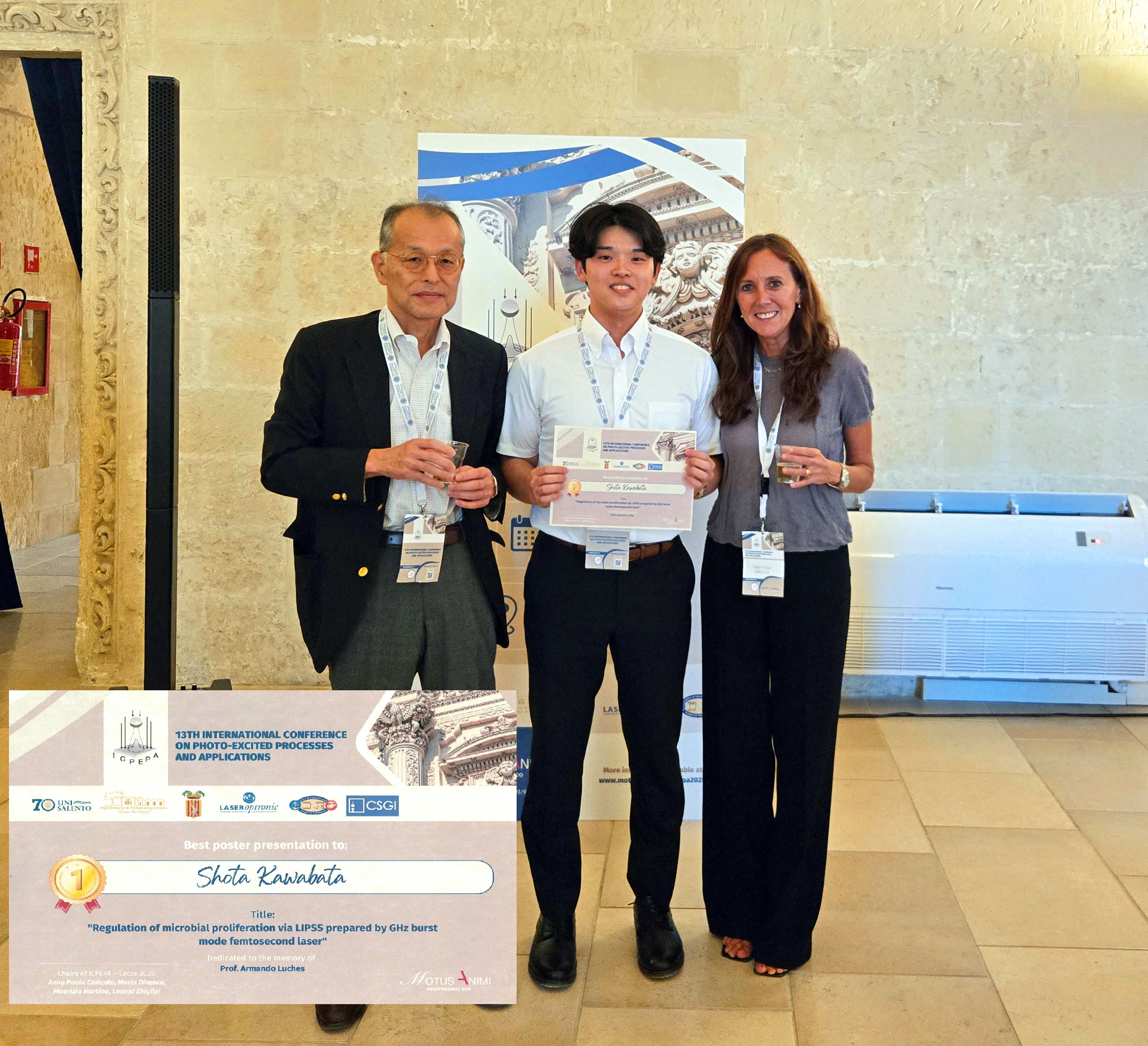 工学府化学物理工学専攻2年の川端祥太さんが、2025年9月18日に13th International Conference on Photo-Excited Processes and Applications (ICPEPA-13) 「Best poster presentation award (1st place)」を受賞しました。