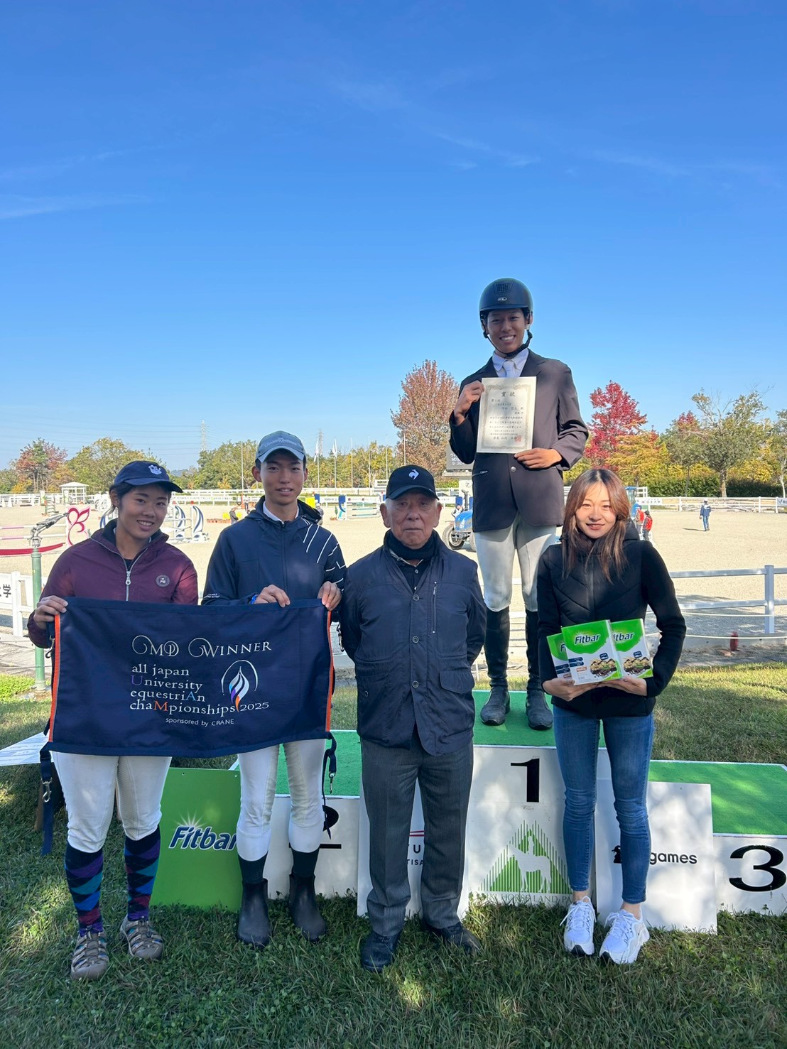 馬術部で農学部地域生態システム学科3年の河内悠太さんが、2025年10月30日に兵庫県三木ホースランドパークで開催された全日本学生馬術大会2025 MD障害馬術競技大会で「個人優勝」の成績を収めました。