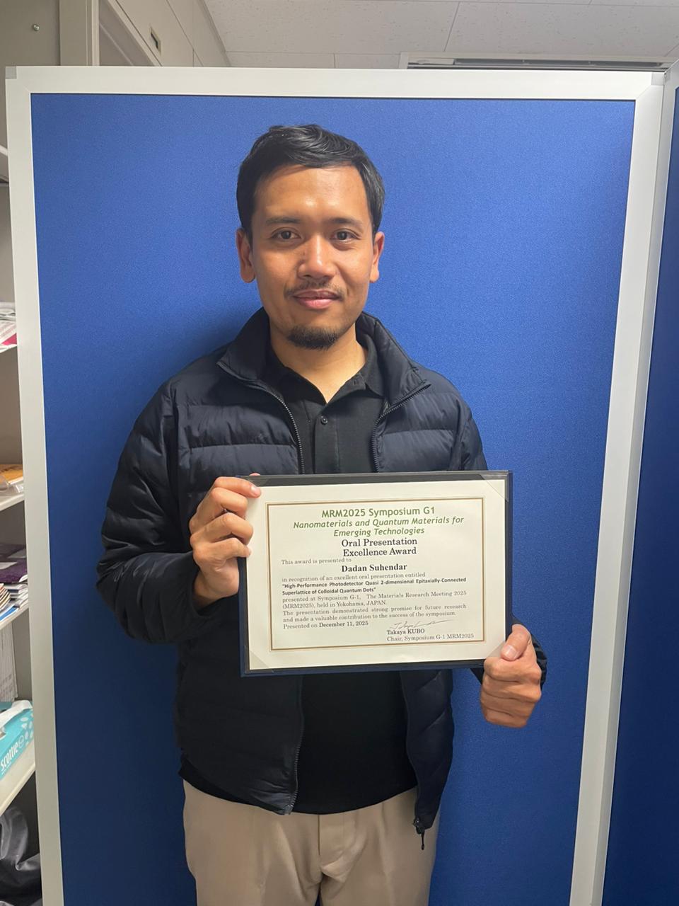 工学府化学物理工学専攻3年のDadan SuhendarさんがMaterials Research Meeting (MRM) 2025 Symposium G1 Nanomaterials and Quantum materials for Emerging Technologies「Oral Presentation Excellence Award」を受賞