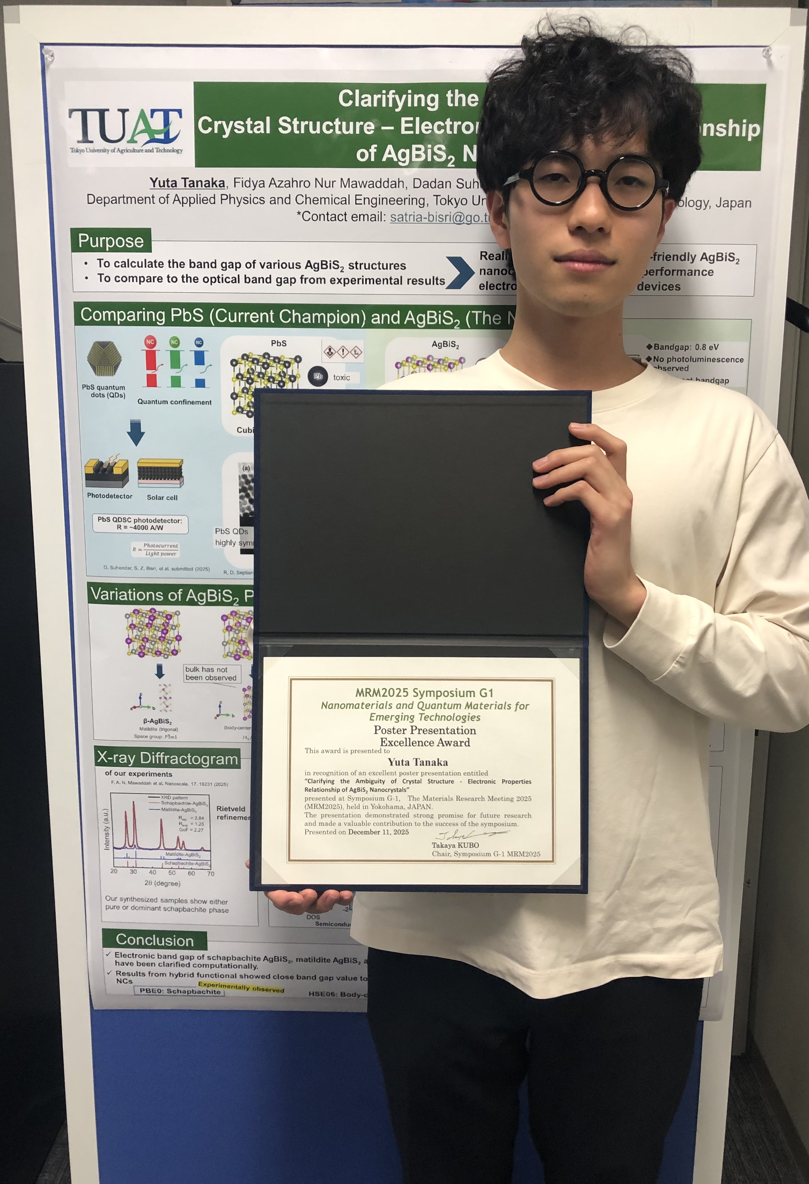 工学府化学物理工学専攻1年の田中雄大さんがMaterials Research Meeting (MRM) 2025 Symposium G1 Nanomaterials and Quantum materials for Emerging Technologies「Poster Presentation Award」を受賞
