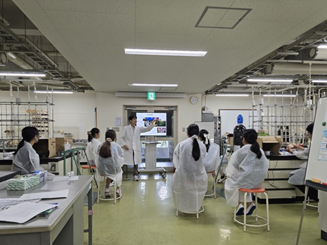 8月7日(木)、小金井キャンパス4号館の応用化学科学生実験室にて、中学生を対象とした公開講座「ノーベル賞の化学反応を用いて光る分子を作ろう(鈴木-宮浦クロスカップリング反応)」を開催しました。今回は中学生9名が参加し、有機化学の魅力に触れる貴重な体験をしました。