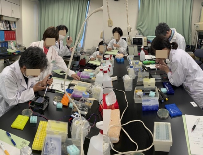 本講座は初心者を対象に講義と実習をとおして遺伝子工学の基礎を学ぶことを目的としており、タンパク質コースと交互に隔年開講しています。社会人対象のリカレント教育の場として高い評価を得ており、今回は民間企業の機器担当者、公的研究機関の研究員、他大学の大学院生・研究員など,全国から5名が参加しました。