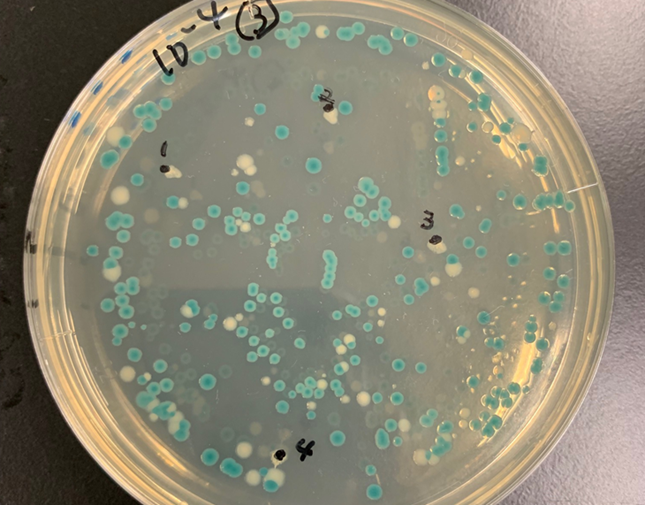 実習では、遺伝子実験施設専任教員の指導のもと、大腸菌コロニーの観察、PCR法、形質転換、菌の培養、プラスミドDNAの単離、制限酵素処理、アガロースゲル電気泳動など、遺伝子工学における基本的な実験操作を体験しました。さらに、ラムダファージのゲノムライブラリーを用いた実験では、各自が寒天培地に形成された大腸菌のコロニーを選び、その中のプラスミドがラムダファージゲノムのどの部分のDNA断片を保持しているかを特定する作業を行いました。