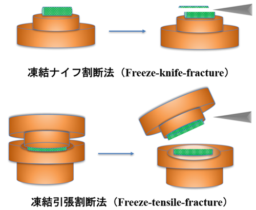 図2 急速凍結した植物試料における原形質膜の凍結割断法