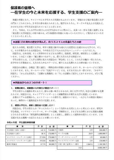 2025度のペアレンツデーは全体会と農工両学部の分科会との2部に分けて開催します。