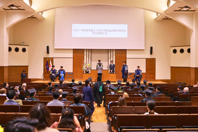 On Monday, March 16, the Reiwa 7th Graduate School United Graduate School of Agricultural Science Degree Conferral Ceremony was held in the Main Building for Faculty of Agriculture Auditorium.