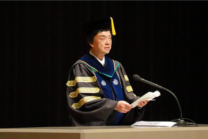 At the ceremony, in the presence of Kazuhiro Chiba President and other related parties, diplomas were awarded, followed by a farewell speech from Chiba President, followed by a speech from the graduates.