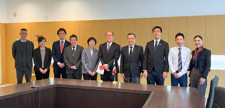 On Thursday, March 19, from King Mongkut University of Technology Thonburi, our overseas partner university of the Kingdom of Thailand, Dr. Chawin Chantharasenawong,Vice-President for internationalization, Dr. Chaowalit Limmaneevichitr, Vice-President for Student and Learning Development, Dr. Surapong Rattanakul, KMUTT-Japan Partnership Coordinator, and Ms. Parinchat Traipanyasart, International Coordinator paid a courtesy visit to the university.