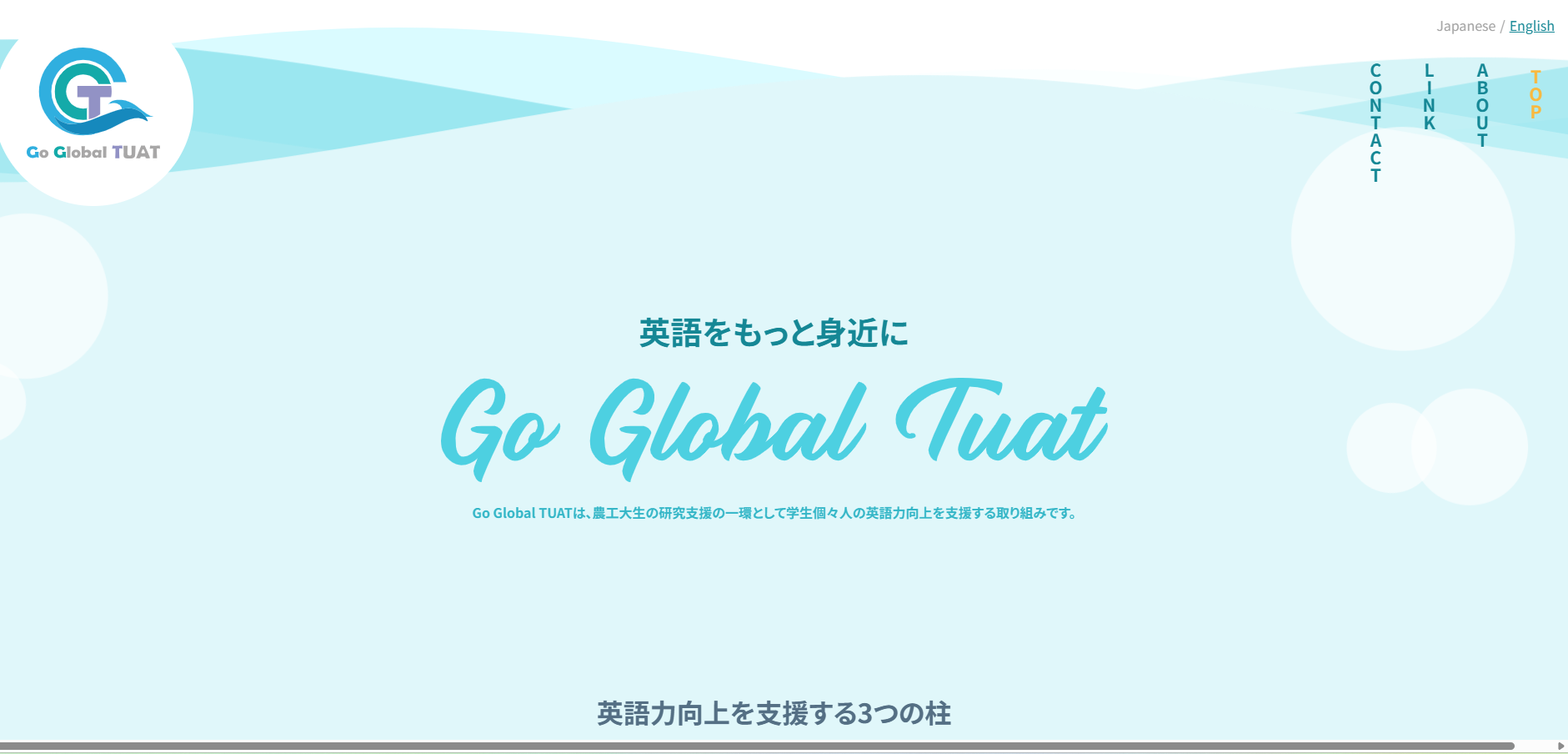 東京農工大学のグローバル教育院では、農工大生の研究支援の一環として、学生個々人の英語力向上を支援する取り組みを行っています。