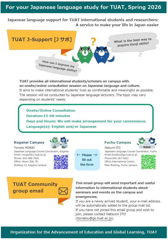 留学生対象日本語サポート TUAT J-Support (Jサポ)