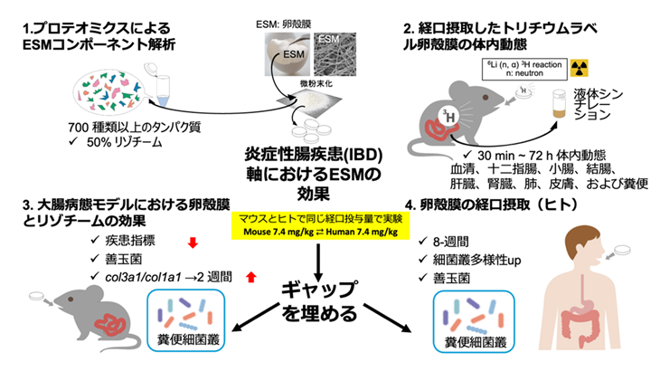 人と動物実験のギャップをつなぐ卵殻膜研究 ― ³Hラベル体内動態解析とIBDモデルによる腸内細菌バランス改善機序の解明 ―