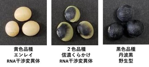 また、黄色ダイズ品種では、ウイルス感染や低温などのストレスで種皮でのRNA干渉が阻害されアントシアニンの蓄積が部分的に起こることでダイズの品質低下につながることが農業上大きな問題となっており、本研究成果は、ダイズの安定した品質維持への貢献が期待されます。さらに、花・果実の色の調節や野菜・果実のフラボノイド・アントシアニン含有量の調節などの応用にも貢献が期待されます。