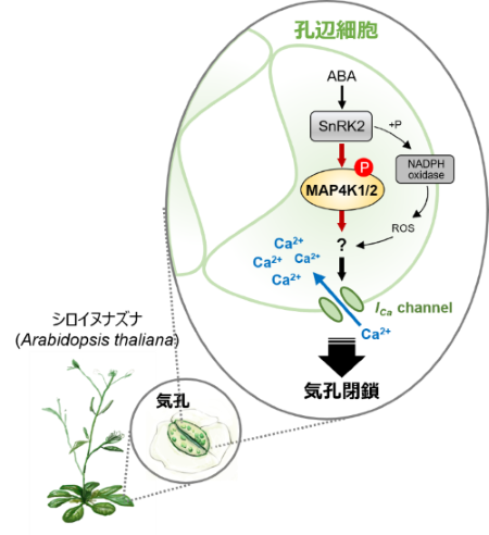 植物の乾燥防御の鍵:気孔閉鎖シグナル伝達を担う新規因子MAP4K1/2を発見 ~長年未解明であったカルシウム制御の謎に迫る~