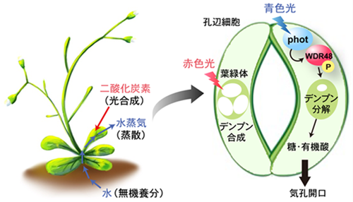 植物が青色光でデンプンを分解し気孔を開く仕組みを解明 −青色光受容体フォトトロピンの新たな基質WDR48を発見−