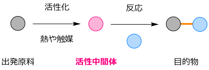 通常、原料となる化合物には長期間安定に保存できる性質が求められますが、一般に「安定な化合物は反応性が低く、反応性が高い化合物は不安定である」というトレードオフの関係が存在します。そのため、安定な出発原料から反応を進行させるには、過酷な加熱条件や強力な試薬を用いて分子を一時的に「活性化」する必要がありました(図1)。